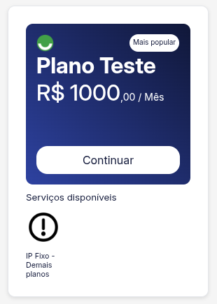 Com estes cadastros, o plano será registrado dentro do sistema e, se tiver o status ativo, ficará disponível para escolha do cliente caso esteja vinculado ao local de escolha do mesmo (cidade ou região). Além disso, é possível vincular serviços aos planos criados nesta tela. O conjunto de planos e serviços podem ter descontos unificados conforme informado na página de Descontos.