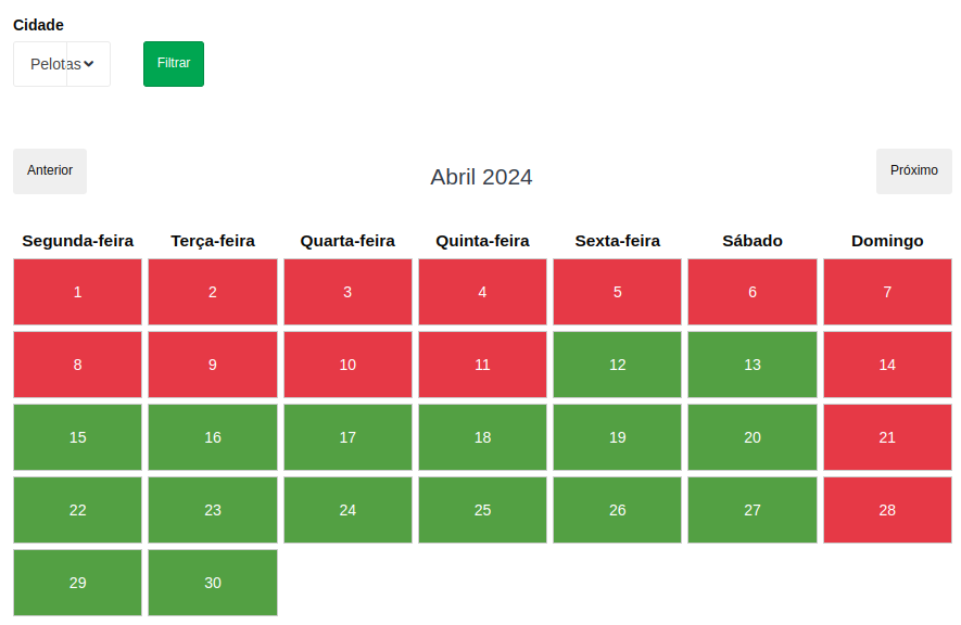 Disponibilizadas em verde são os dias com possibilidade de instalação e, em vermelho são dias com a agenda cheia.