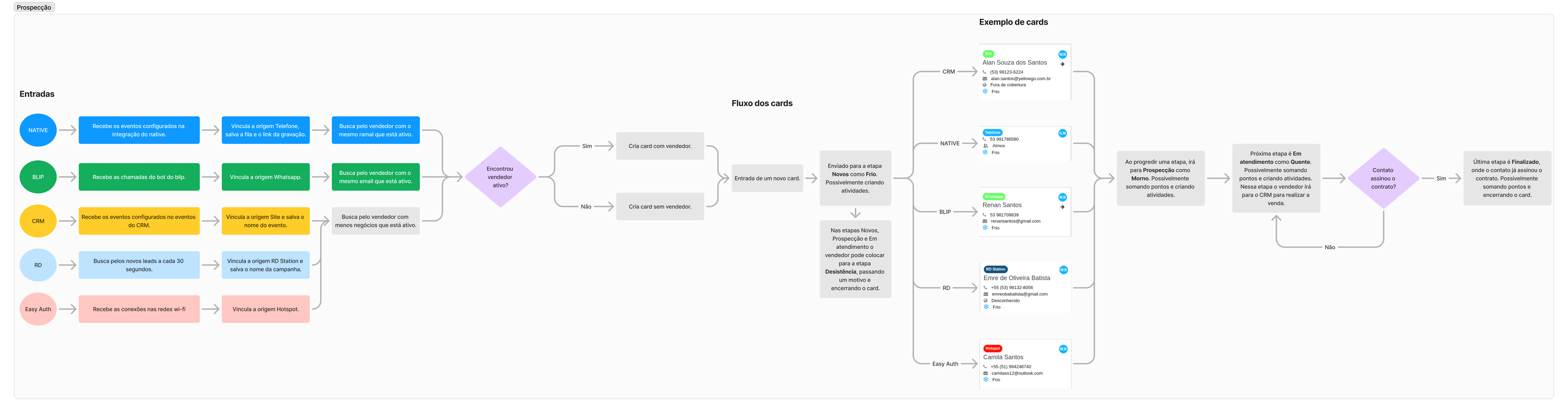 O fluxograma de entradas do módulo de prospecção de clientes segue a padronização descrita a seguir.