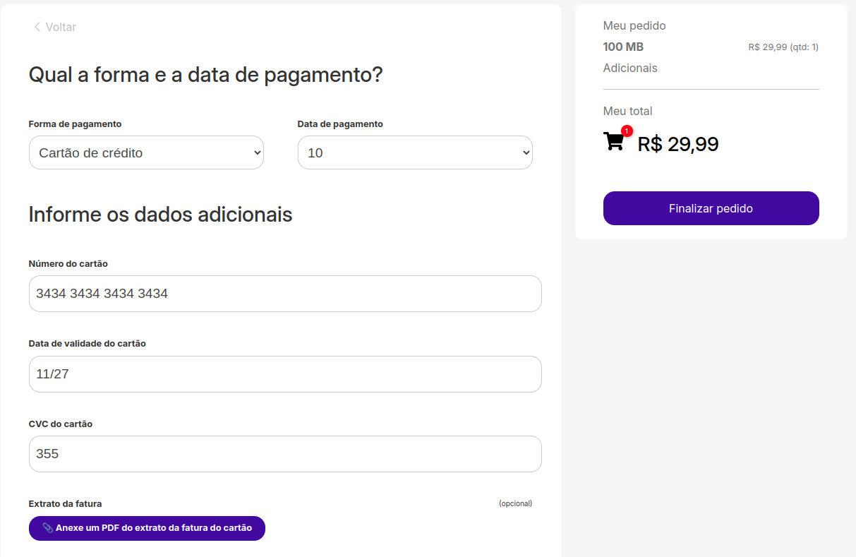Quando o cliente selecionar a opção vinculada, os campos adicionais serão exibidos.