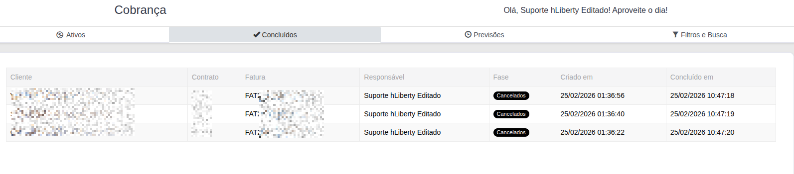 Lista todos os processos de cobrança que foram finalizados.
