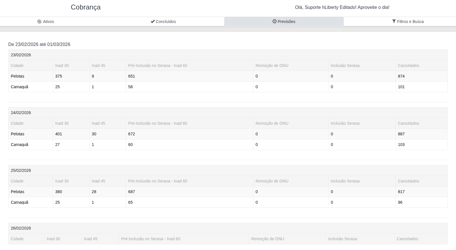 | Inad 45 | Cobrança Administrativa | 45 dias |