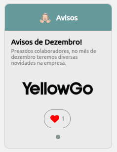 O módulo de avisos no mural permite a publicação de comunicados curtos e temporários, similar ao conceito de “stories” presente em redes sociais. As publicações ficam exibidas em um modal no menu lateral direito da página que pode ser personalizado conforme a necessidade.