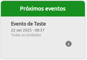 Conforme o cadastro, todos os eventos ficarão disponíveis na página de Calendário de Eventos, também podendo ser visualizados de forma retroativa.