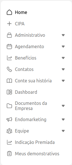 Na aba Administrativo, é possível realizar o gerenciamento de todas as configurações do sistema somente em um módulo, podendo realizar cadastros completos de colaboradores, gerenciar permissões de acesso de cada colaborador através de diferentes níveis de funcionalidades. Este menu é personalizável conforme a necessidade, isto é, torna-se possível cadastrar funções conforme projetos da empresa são realizados (ex.: aba da CIPA, 5S e afins).