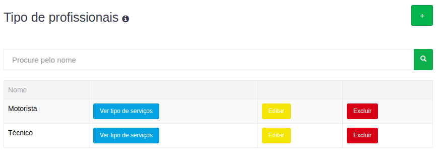 O menu Profissionais é o local onde são cadastrados todos os colaboradores (técnicos, motoristas, etc.) que prestam serviços e utilizam o sistema através do módulo Agendou.
