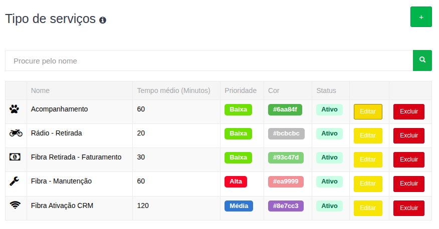 Colunas da Tabela:- Nome: O rótulo da prioridade (ex: Urgente, Alta, Média, Baixa).