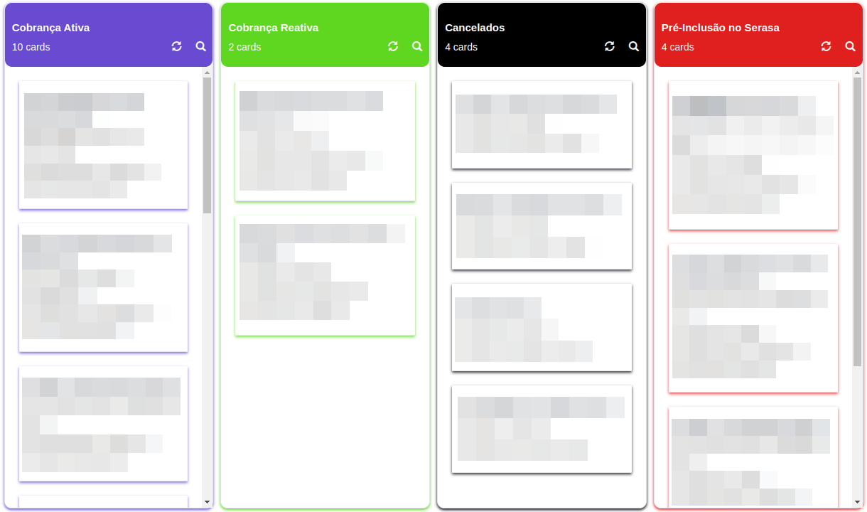 O módulo de Cobrança da plataforma YGo permite o gerenciamento de interações com clientes através de diversas formas de negociação. O módulo baseia-se em um quadro Kanban onde cada etapa determinará o período de dias sem pagamento do cliente, cabendo ao usuário final realizar tratativas conforme seu caso.