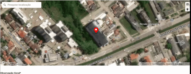 O desenho do polígono define a área de cobertura do prédio no mapa.
