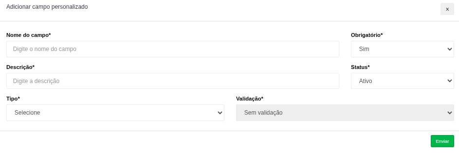 Esta funcionalidade permite a criação e gerenciamento de campos adicionais para o cadastro de prédios, adaptando o sistema às necessidades específicas da operação.