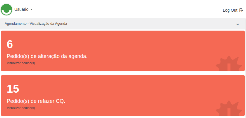 Os atendimentos com pedidos de refazer pelo módulo de Controle de Qualidade são exibidos na parte superior da tela juntamente com os pedidos com alterações da agenda.